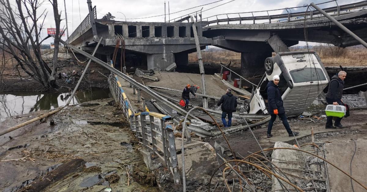 Kun Venäjän joukot hyökkäsivät Ukrainaan 24.2.2022, ne aloittivat hyökkäyksen kohti Kiovaa sen piirittämiseksi. Maaliskuun 2022 alussa Irpinin asukkaita alettiin evakuoida Kiovan suuntaan tuhotun sillan yli.