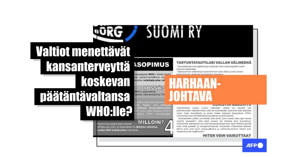 Pandemiasopimuksesta ja IHR:stä on levinnyt mis- ja disinformaatiota eri kielillä, mukaan lukien englanniksi, ranskaksi ja kreikaksi. AFP on osoittanut vääriksi aiheeseen liittyviä väitteitä aiemmin myös suomeksi.