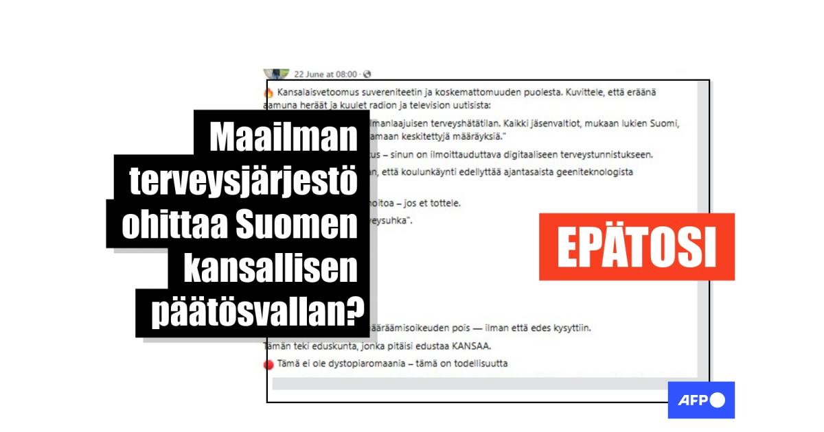 "Kuka päätti, että WHO voi ohittaa eduskunnan päätökset?" kysytään suomenkielisessä Facebook-päivityksessä, joka julkaistiin 22.6.2025 ja jota on jaettu yli sata kertaa sen jälkeen. Siinä väitetään, että hyväksymällä "WHO:n pandemiasopimuksen terveyssäännöstön" eduskunta teki WHO:sta "Suomen kansainvälisen terveyskomennuskeskuksen" ja että järjestö pystyy tämän seurauksena ohittamaan Suomen kansallisen päätösvallan. Päivityksen mukaan tämä tarkoittaa, että WHO voi julistaa kansainvälisen hätätilan, määrätä pakollisia lääketieteellisiä toimia ja vaati informaation "sensuroimista" ja että terveystietoja voidaan säilyttää kansainvälisissä järjestelmissä ilman kansalaisten lupaa.