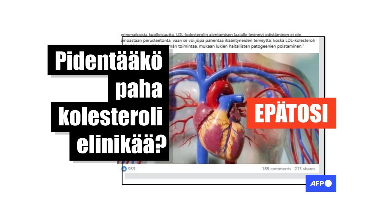 Korkean LDL- eli niin kutsutun pahan kolesterolin tiedetään lisäävän sydän- ja verisuonitautien riskiä. Vuonna 2020 julkaistussa tutkimuksessa kuitenkin väitetään, että korkea LDL-kolesteroliarvo on yhteydessä pidempään elinikään ja että se ei todennäköisesti aiheuta sydän- ja verisuonitauteja. Tutkimus on jatkoa vuonna 2016 ilmestyneelle, laajasti kritiikkiä saaneelle tutkimukselle. Vuoden 2020 tutkimus nousi uudestaan esiin suomalaisessa sosiaalisessa mediassa vuoden 2025 lopulla, kun entinen kaupunginvaltuutettu kirjoitti siitä. Asiantuntijat kertoivat AFP:lle, että suuri määrä tutkimuksia osoittaa päinvastaista, kuin väitteissä sanotaan, ja että sekoittavat tekijät vaikuttavat tutkimuksen tuloksiin.