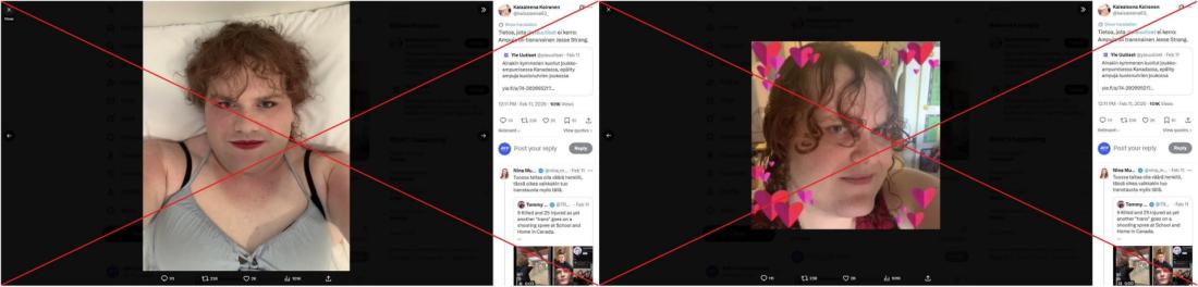 Ontariolaisnaisen kuvat leviävät Tumbler Ridgen ampumisen yhteydessä – oikeasti epäilty ampuja on eri henkilö