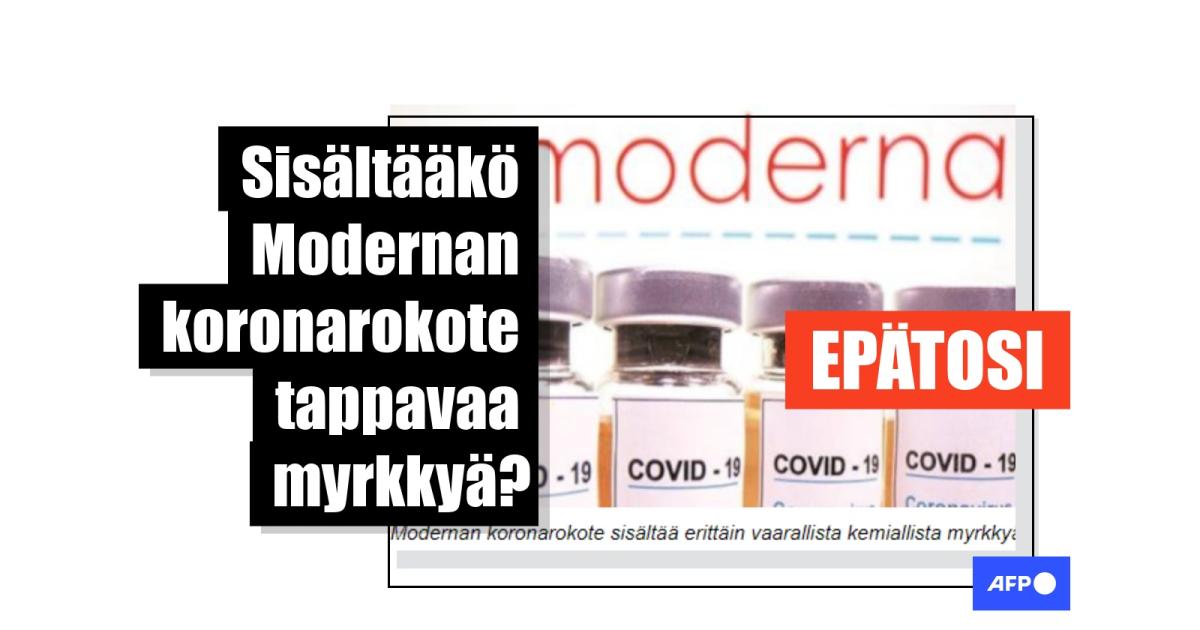 “Modernan COVID-mRNA koronarokote sisältää tappavaa kemiallista myrkkyä. Suomi on tilannut 2 miljoonaa annosta Modernan koronarokotetta. Järkyttävä kysymys kuuluu nyt: Miksi tämä vaarallinen kemiallinen myrkky on Modernan tuottamassa mRNA-COVID-rokotteessa, jota kutsutaan nimellä SM-102”, kirjoitetaan Uusi MV-lehti-verkkosivustolla (UMV) 24.05.2021 julkaistussa artikkelissa.