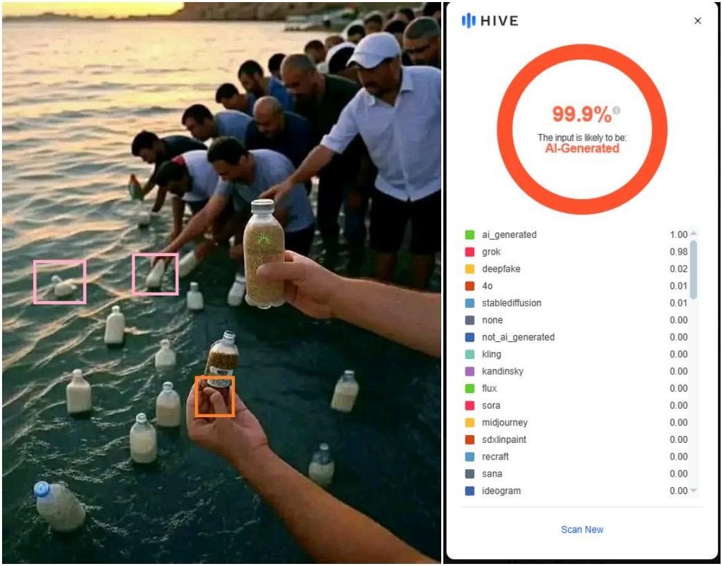 Attention, ces images d'Égyptiens lançant des bouteilles remplies de vivres vers Gaza ont été générées par IA